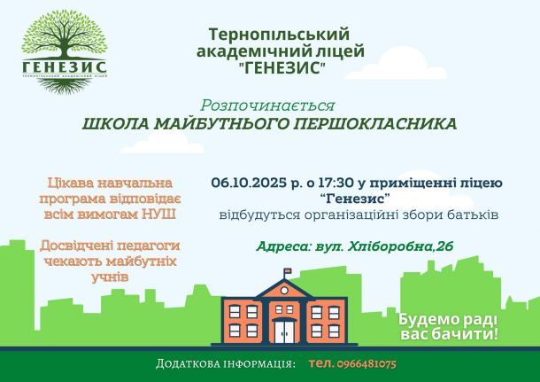 29 Вересня, 2025 Ліцей “Генезис” радо запрошує на навчання у школі майбутнього першокласника Read More