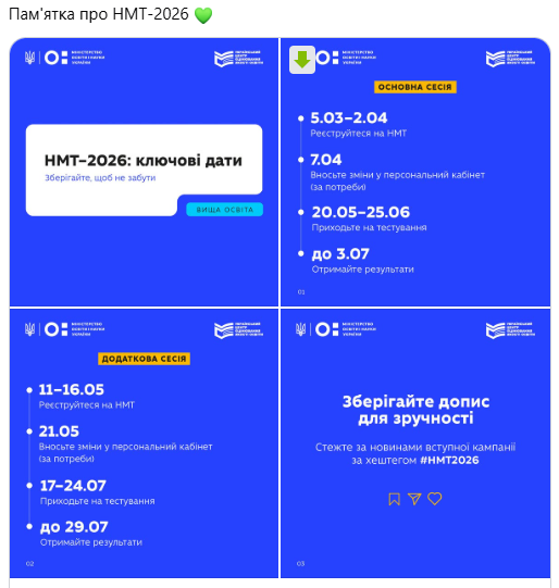 Стежте за новинами вступної кампанії за хештегом #НМТ2026.